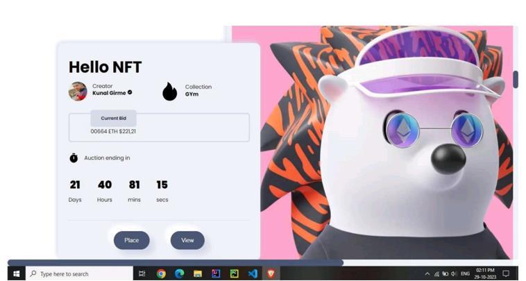 The NFT (Non-Fungible Token) marketplace is designedtofacilitatethecreation,trading,andownershipof digital assets securely and efficiently. At its core, the architecture comprises several key components. Firstly, thereisthefrontendinterface,accessibletousersthrough webormobileapplications,providinganintuitiveplatform for browsing, buying, and selling NFTs. This frontend interfaceiscomplementedbyabackendserverresponsible formanaginguserauthentication,handlingtransactions,and interfacing with the blockchain network. The blockchain network itself forms the backbone of the marketplace, servingasa decentralizedledger torecordtheownership andtransactionhistoryofNFTs.Smartcontracts,deployed ontheblockchain,encodethebusinesslogicgoverningthe creation, transfer, and verification of NFTs, ensuring transparencyandimmutabilityoftransactions.Additionally, decentralized storage solutions, such as IPFS (Inter PlanetaryFileSystem),areintegratedintothearchitecture tostorethedigitalfilesassociatedwithNFTssecurelyand efficiently.