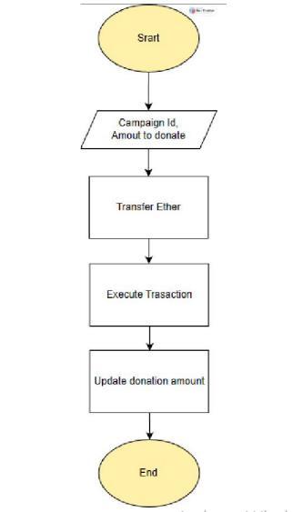 4.2 Donation - Anyone can donate to a campaign by specifyingthecampaignIDandsendingEtheralongwiththe transaction. The smart contract adds the donor's address and donation amount to the campaign's 'donators' and 'donations'arrays, respectively.It thensends the donated Ethertothecampaignowner'saddress.Ifthetransactionis successful,theamountcollectedbythecampaignisupdated.