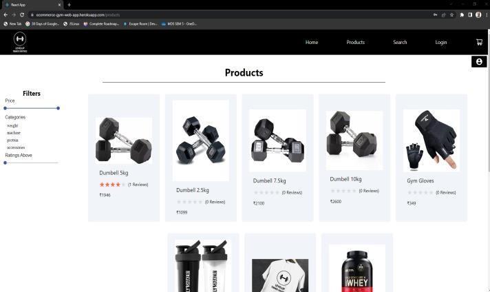 B)Products:alltheproductslistedinthewebsitecanbe accessed.Theirname,price,reviewsallareattachedwith theproductvisibleinthescreen.