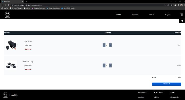 LEVELUPincorporatesashoppingcartfeaturethatallows users to add desired products, facilitating easy management andpurchaseofselecteditems.