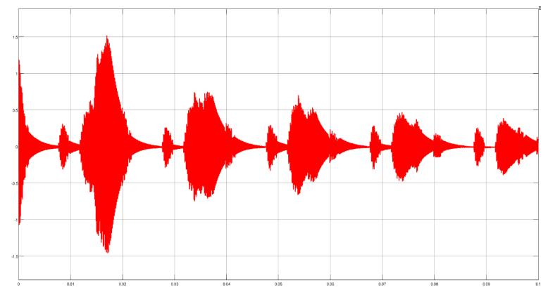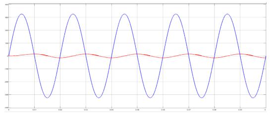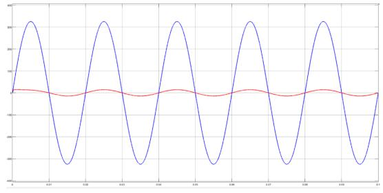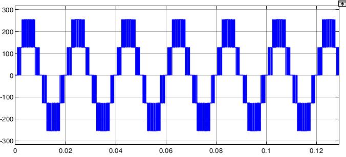 Figure5showsthefive-levelinvertersimulation.Using MATLAB/SIMULINKsoftware,wesimulatedathree-phase, five-levelcascadedmultilevelinvertermodelandfoundthat thesuggestedPWMtechniqueworks.Thefive-levelinverter arrangementwassubjectedtosuggestedPWMapproaches. ThegridrequirestheinvertertoproduceavoltageVrwithan angle δr in order to receive average active power P. In simulations,asystemwithP=5kW,Vr =233V,andδr=0.158 radwasused.Cascadedfive-levelinvertersimulationresults withsuggestedPWMapproachesareshowninFigure 6to Figure10.Theoutputvoltageofthefive-levelinverterafter filterandthematchinggridcurrent"ig"areshowninFigure 7.TherelatedplotsalsodisplayedtheFastFourierTransform ofthefive-level inverteroutputvoltageandtheassociated gridcurrent"ig "areshowninFigure11.Whencomparingthe suggestedPWMapproachtotheusualSPWMtechnique,itis noticeable that the inverter output voltage has somewhat greatermagnitudesofhigherorderharmonics.