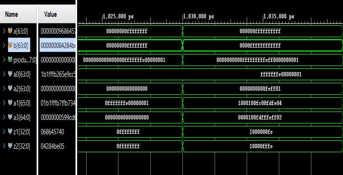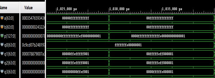 -9: Simulationresultsof64-bitkaratsubamultiplier