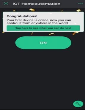 When both the Node MCU(ESP8266) is connected to the internetandinternetconnectionisavailabletothemobile. Then, when we switch is ON in the blynk IOT application the corresponding relay connected to the Node MCU will berespondaccordingtotheaction.