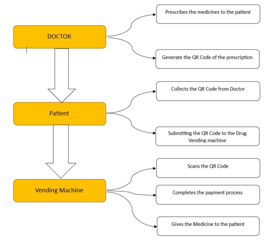The primary goal of our project is to automate the prescription-to-medicationprocess,reducingtherelianceon manual steps and thereby enhancing efficiency. Enhanced PatientConvenience:Weaimtoprovidepatientswitheasy access to their prescribed medications at any time, in locationswheretraditionalpharmaciesmaynotbereadily available.Ourobjectiveistocreateasystemthatoptimizes prescription data management, ensuring data accuracy, reducing the risk of errors, and simplifying the regulatory complianceprocess.Westrivetoenhancetheoverallpatient experience by introducing a user-friendly, secure, and efficient method for obtaining prescribed medications. Throughtheautomationofmedicationdispensing,weaimto contribute to cost savings within the healthcare system, benefitingbothprovidersandpatients.Ourprojectaimsto implementrobustsecuritymeasurestoprotectpatienthealth information, ensuring compliance with healthcare data privacyregulations.Weseektofosterinnovationwithinthe healthcaresectorbyintroducingcutting-edgetechnologythat modernizes and simplifies the medication procurement process.