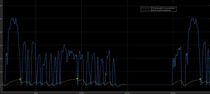 Theoutputspeedchangeswithrespecttotheinputsignal. Drive cycle source is given as an input to the longitudinal driver