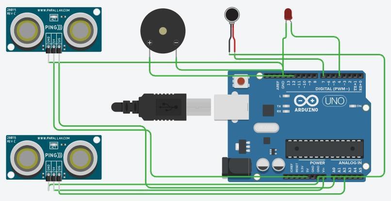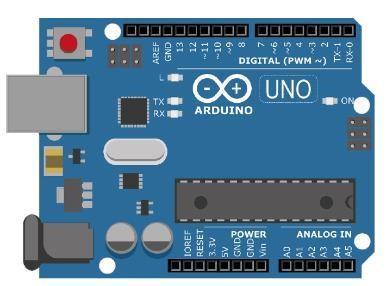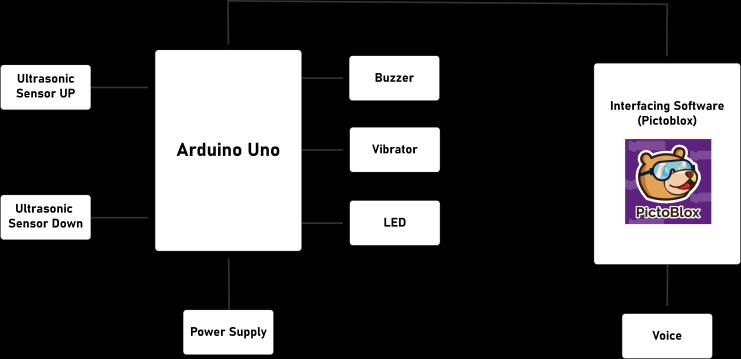 Arduino Uno - The signals are sent to the Arduino Uno which is the main microcontroller or the circuit. The Arduino Uno transmits these signals towards the output devices and performs tasks on the code given. The Arduino Uno consists of 14 digital input/output pins (of which 6 can be used as PWM outputs), 6 analog inputs, a 16 MHz ceramic resonator, a USB connection, a power jack,anICSPheaderandaresetbutton.Itisaboardbased onATmega328Pcontrollerandhas32KBofflashmemory. It also has a UART (Universal Asynchronous ReceiverTransmitter) interface for serial communication with otherdevices.[18]