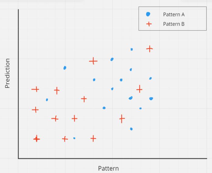 The algorithm receives the pattern as input and checks for similar patterns, then it marks a few similar patterns according to the dataset in the database. If the patternexactlymatchesthepatterninthedatabase,thenthe corresponding message is sent as an output. If not, the similar patterns are taken into account, then they are compared to obtain the most similar output. The above graphshowsthat,ithastakenaccountoftwopatternsata single time, and then the mapping of those prevoiusly enteredvaluesareprovided.Ifthecurrentlyenteredvalues fallsnearthesetofpatternswhichhasthemostoccurance aroundit,thenitischosenastheoutput.