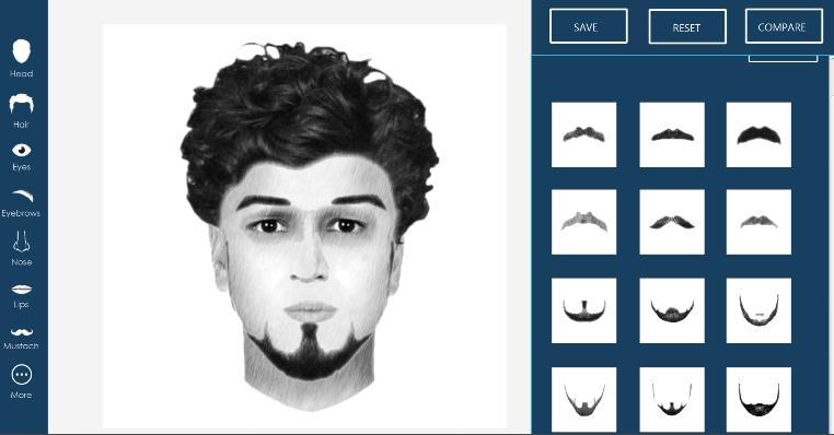 These facial features are available in the application to facilitate the creation of a composite face sketch of the suspect.Theyareutilizedbasedonthedescriptionprovided by eyewitnesses to the law enforcement and forensic departments.