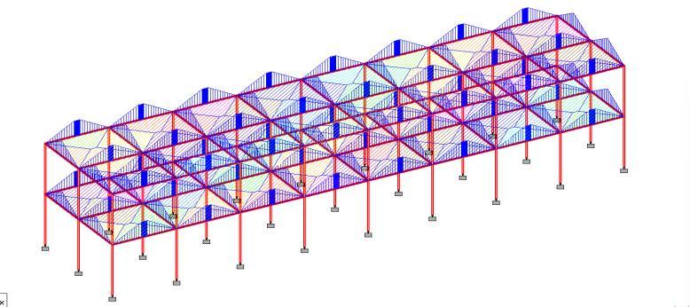 Eight blocks with two storey make up a module that is usedtoanalyzethestructure. Differentchannels sections are used to stiffen the walls and the structure as a whole. Additionally, the combination with the best utilisation ratioistakenintoaccount.