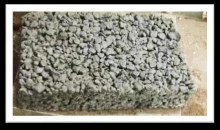 Size of Pervious concrete pavement (488mm* 304mm* 122mm) l*b*h weight of aggregate 74.850kg, weight of cement 33.26 kg, weight of water 14.96 kg for three (3) perviousconcretepavementblocks.