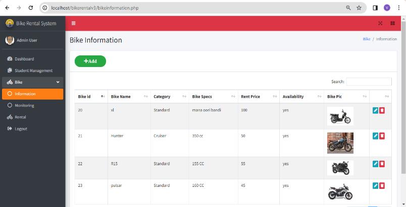 4.3.3 bikeinformation.php: Bikemonitoringandmanagementpageforadmin.