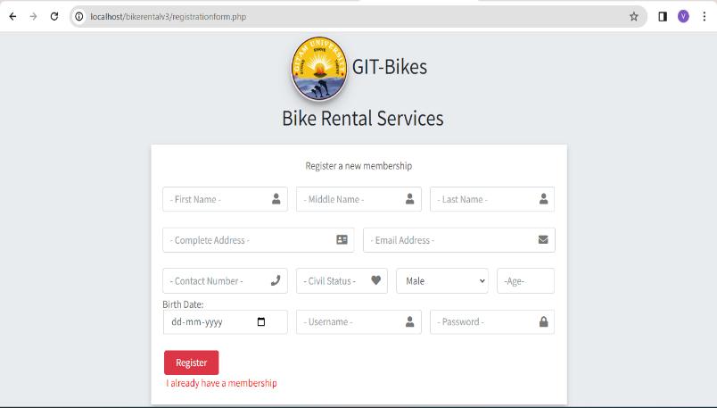 The " Bike Rental Application: GITAM Exclusivity" is a specialized platform designed exclusively for GITAM University students, offering a seamless and convenient way to access bike rental services within the campus premises. This innovative application addresses the specific needs and preferences of GITAM students, ensuring a hassle-free experienceforbothbikeownersandrenters.