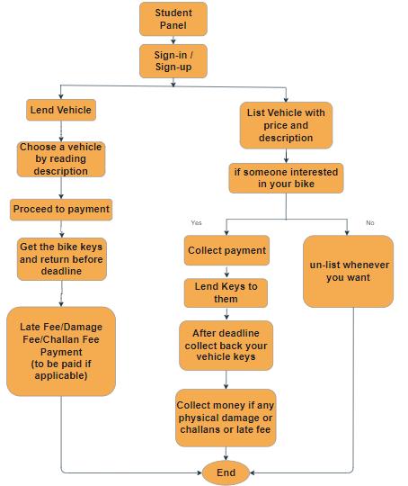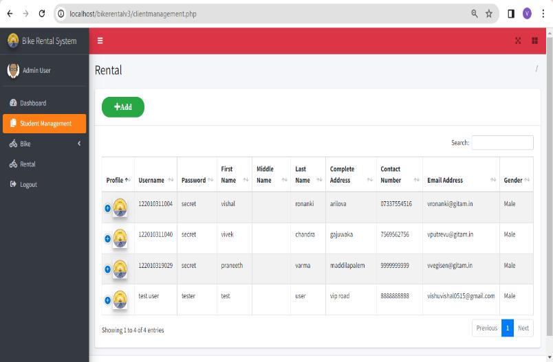 1. Listing of bikes (Students can give their bike for renttootherfellowstudents).
