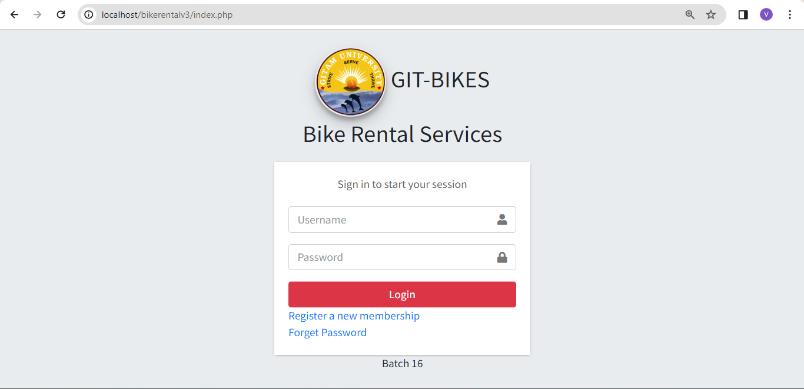 Keywords: WebApplication,BikeRental,University Exclusivity,PHP,XAMPP.