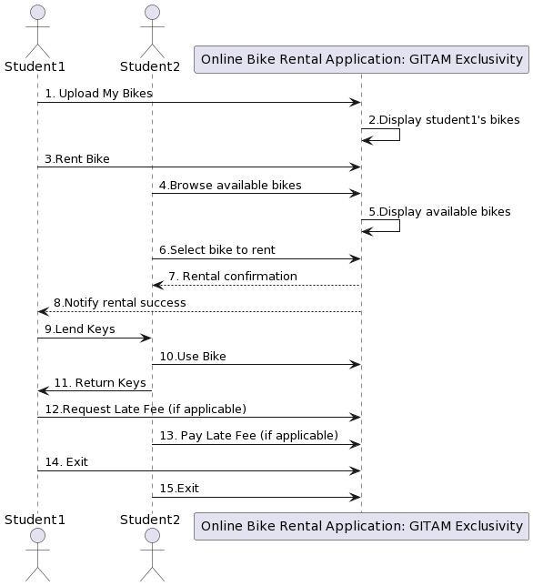 Actions performed by the students (both student1 and student2)withtheBikeRentalApplicationstartingfrom bikeuploadtillthelogoutaction.