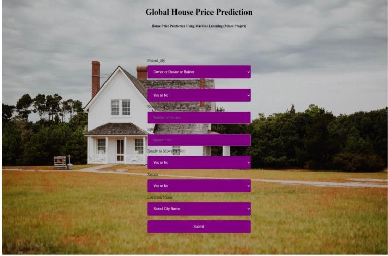 Integration with Machine Learning Model: Behind the scenes, the web application integrates with a machine learning model trained on historical housing data. This model uses algorithms such as regression or gradient boostingtoanalyzetheinputdataandpredictthepriceof theproperty.