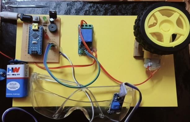 "The eye blink system comes with an IR sensor mounted on which the user can wear like normal glasses, shown in the picture below. Eye blink Sensor is a more simple sensor used to detect eye blinks and eye movement . It uses as a simple infrared sensor to detect if the person's eye is closed and the corresponding data received can further be processed by any logic as required for the application!!"It also help the driver from external matters suchassand,dust,windandextremetideymatters.dueto itslightweightitappearsaslikethatyouare notwaering it .It is made up of plastic , slicon and others light weight materials.duetohighavablityofframesandglasswehave selected this kind of glass . It also proctect the eyes when excessive light from upcoming car is sticking on front body.