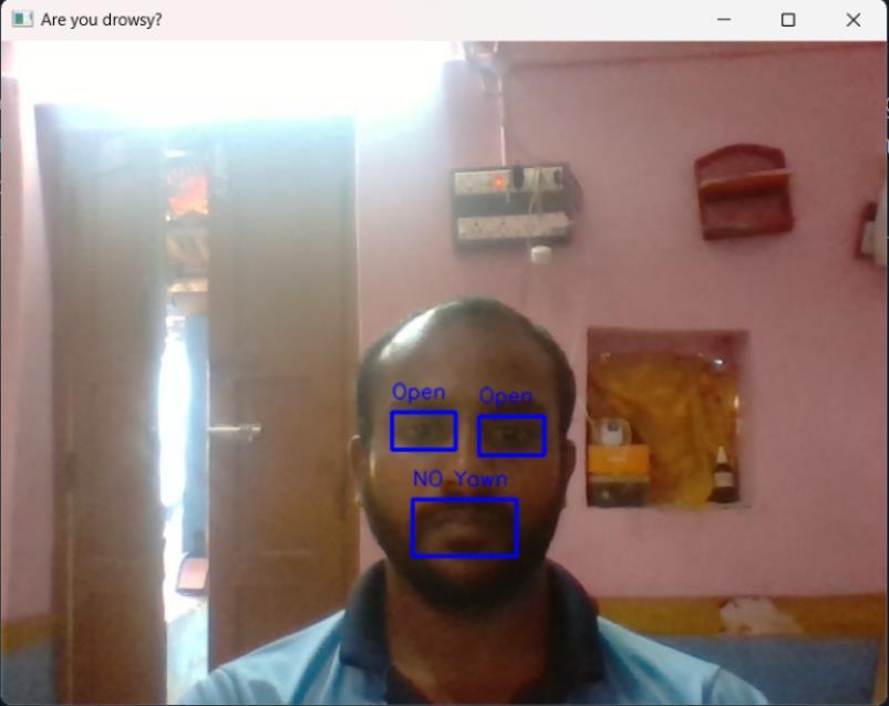 Figure4depictsthenon-drowsystateofthepersoninthe video frame, characterized by open eyes and a closed mouth. In this state, no alert is prompted regarding the person'sdrowsiness.