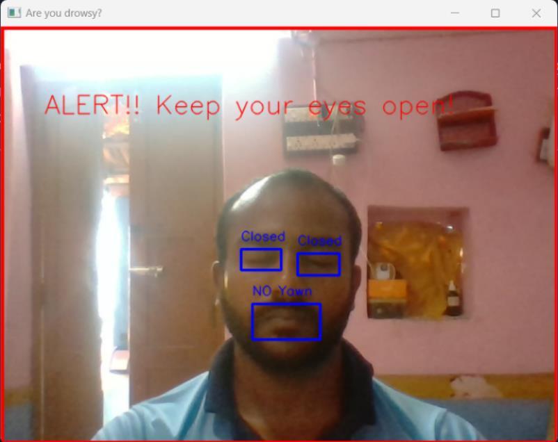 In Figure 5, the person's eyes are closed, but there is no indication of yawning. The model prompts an alert about theperson'sclosed-eyestate.