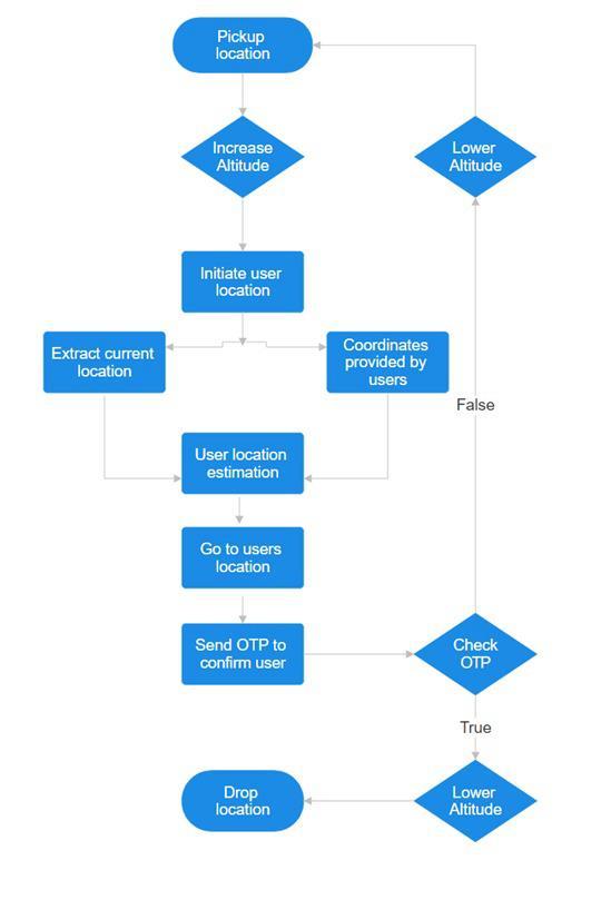 Pickup and Dropoff : At the source location, the drone lands or hovers at a predetermined spot to collect the package.This mayinvolvea designatedlanding pador an areaclearedfordroneoperation.Alternatively,thepackage maybeplacedinasecurecontainerordockingstationfor pickupbythedrone.Thedronetakesoffandbeginsitsflight to the destination address. It follows a pre-programmed flightpathorreal-timeinstructionsfromaremoteoperator, avoiding obstacles and adhering to airspace regulations After completingthedelivery,the dronemay return to its baseorproceedtothenextdeliverylocation,dependingon theoperationalrequirementsandscheduling.
