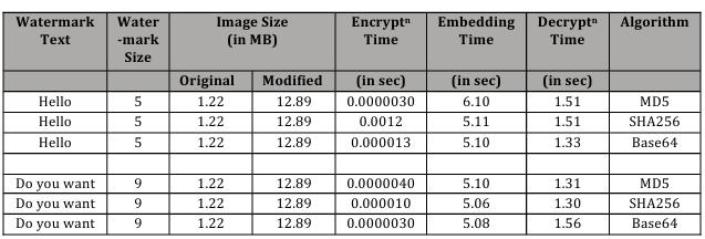 ď‚· The selected watermark is encrypted using the chosenhashalgorithminPHP.