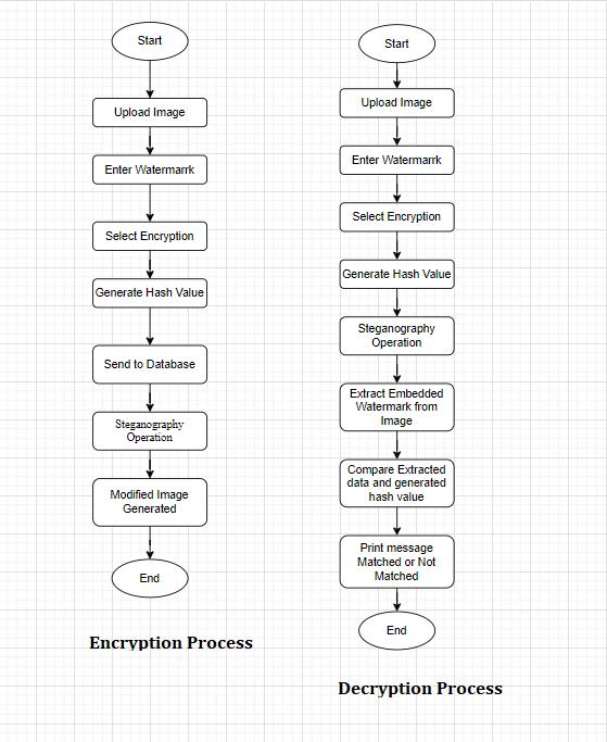 ď‚· Encrypted watermarks, along with image details and other relevant information, are stored in a MySQLdatabase.