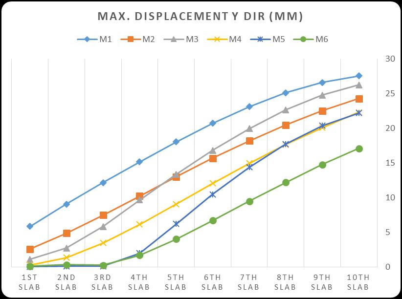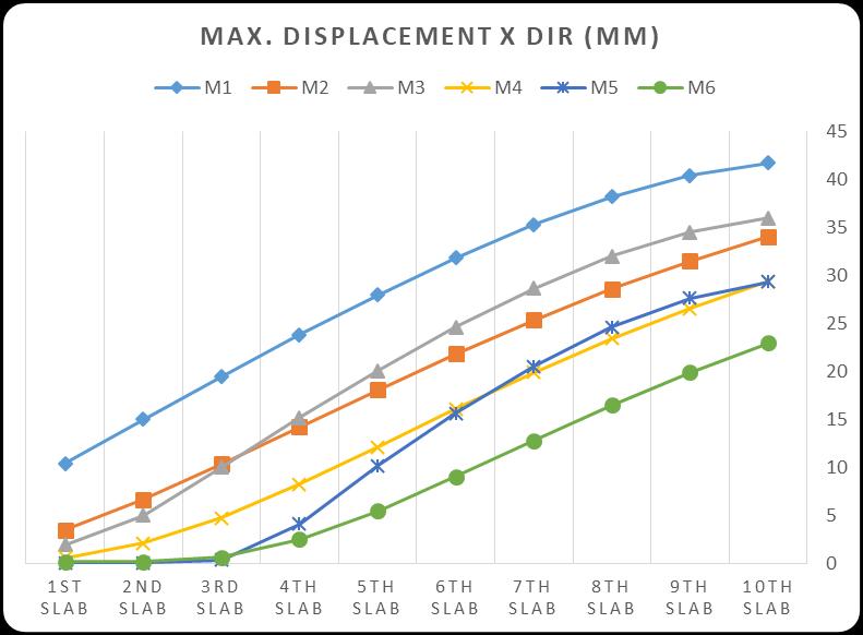 1. Foreasycomparisonofthelateraldisplacementof the selected building, plots of the story level displacementinlongitudinal ortransverseversus heightaremadeforthesixcases,allimposedonthe samegraph.