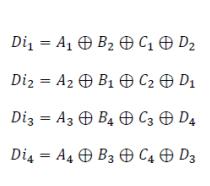 The green cells represent the diagonal bits (Di) that were examinedusingXORoperationsincertaindatabits: