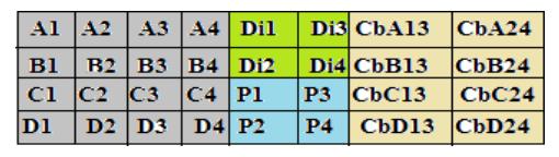 Parity bits (P) were analyzed using XOR operations in the databitscolumnsofthecellthatwascoloredblue: