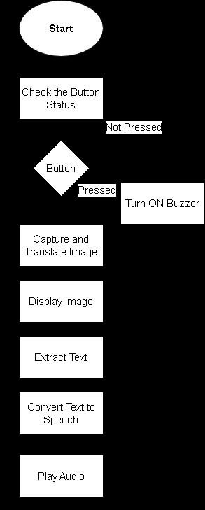 4 User Interaction: The system provides a user-friendly interfacedesignedforblindusers,possiblyincorporatinga button. This enables users to control the reading process, such as pausing/resuming reading, skipping sections, or adjusting the reading speed, enhancing their overall experience.