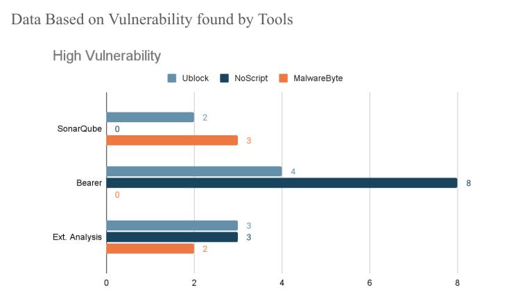 c. Bearer[10]: Bearer[9] is a comprehensive security tool designed to automatically detect and mitigate risks associated with API. For Ublock Bearer[9] dashboard indicated 4 high-level issues on further analysis of these issues it was discovered that 2 were associated with third-party libraries and the other2werefalsepositivessince the code base there was no source for the vulnerable sinks. The NoScript tool indicated 8 High-level issues. Similar observation to Ublock Origin[5]thevulnerablesinksare