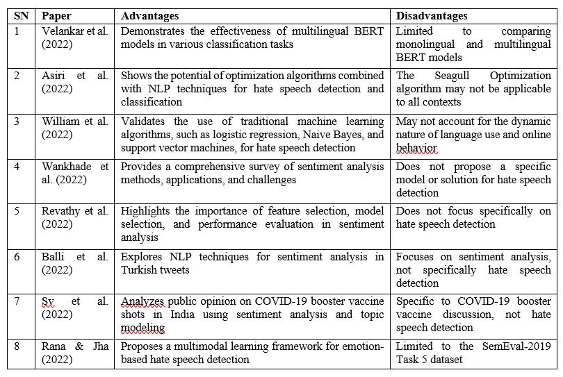 Hatespeechdetectionhasgainedsignificantattentiondue to the prevalence of offensive and discriminatory content on social media platforms. Traditional approaches have relied on keyword-based filtering and machine learning techniques[10], [23],[24]. However,thesemethodsoften struggle with the subtle and context-dependent nature of hate speech. BERT-based models have emerged as a promising solution, with studies demonstrating their effectiveness in identifying hate speech across different languagesandplatforms[4],[7]-[9]