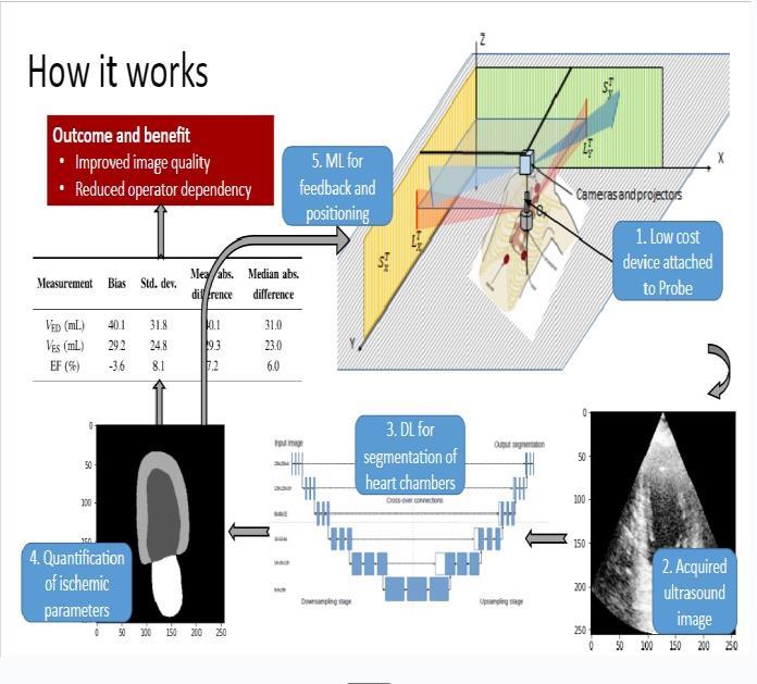 ProjectobservationsshowthatLU-Netgreatlyenhancesthe ultrasound image segmentation of cardiac structures. Of particular interest is the system's capacity to support sonographersinreal-timeduringimageacquisition.Through the guidance of the ultrasound probe's orientation and location,LU-Netguaranteesthebestpossibleimagequality, whichisessentialforprecisediagnosis.Thisfunctionsaves timeandeortwhenacquiringandinterpretingimages,in additiontoimprovingdiagnosticskills.