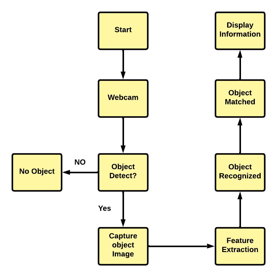 We propose a system that uses webcam to object recognition and object detection to provide the accurate informationofthatparticularobjectwhichisdetectedand recognized. In today's expeditious world where the need forhigh-techcapacityinanambitiousmarketisgrowing.