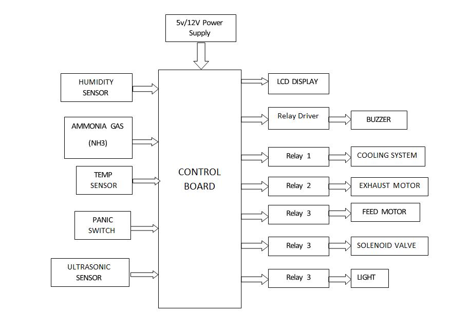 The proposed poultry automation system represents a paradigm shift in poultry farming management, offering a holistic solution for monitoring and controlling essential parameters critical to chicken health and productivity. Central to this system is its ability to seamlessly monitor and regulate environmental factors such as temperature, humidity, and ammonia gas levels, all of which are crucial for ensuring optimal conditions within poultry facilities. Through the integration of sensors and a centralized controller,real-timedataontheseparametersarecollected and analyzed, enabling proactive adjustments to maintain idealconditionsformaximumpoultryproduction.