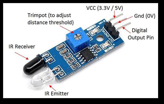 An apparatus that recognizes and interprets infrared (IR) signalsisknownasanIRsensorboardorIRsensormodule. Typically,ithasasignalamplifier,ademodulatorcircuit,and an IR receiver LED. While the signal amplifier and demodulator circuits process and amplify the IR signals, respectively, the IR receiver LED detects the signals. Photodiodes that detect infrared light are called infrared