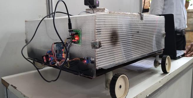 Whenapassengerwithadisabilityjoinsthetrainthroughan open door, an IR sensor will detect their presence and automatically extend and retract the ramp. The sensor locatednexttothedoor.Thetrainwillautomaticallyreverse courseafterstoppingandrampingdowntothestationlevel forawhile.Itiswheretherampismovedtoexpandfromits retractedposition.Tomovethesecondplateahead,motors housedwithinthehousingturntherack'spinion.Thefirst platewillexperiencethesamethingasitbeginstoemerge fromthesecondplate.However,thesoledistinctioninthe mechanismisthatinthecaseofthefirstplatemotion,the motororpinionisstationaryandtherackhaslinearmotion, whereasinthecaseofthesecondplatemotion,therackis stationaryandthemotorhubhaslinearmotion.Bothofthe plates should be at a certain angle with the ground when they are fully stretched. Thus, hinges are installed on the secondplateforthistilt.Now,inordertoretracttheplate, themotorwillrotateintheotherdirection,usingthesame procedure. IR sensor components were also provided.