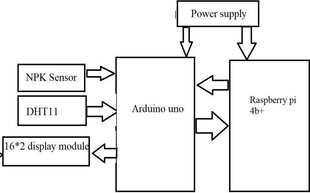 Inthisproject,we'reusingArduino,whichislikea tiny computer, to help us with farming. We've also got specialsensorsthatcantellusaboutthenutrientsinthesoil (NPK),aswellasthetemperatureandhumidityintheair. Thesesensorsarelikelittledetectivescollectingimportant information.Thefirststepisallaboutgatheringdata.Think ofitastakingnotesaboutwhat'shappeninginthesoiland aroundtheplants.Thesensorstellusifthesoilhasenough of the right nutrients, and if the weather is good for the plants. The second step is where the magic happens. We haveasmartcomputerprogramcalledamachinelearning model.Thiscleverprogramlooksatalltheinformationthe sensors collected. It's like a plant doctor that checks how healthytheplantsaregoingtobe.So,thebigideaisthatwe usetechnologytokeepaneyeonthesoilandweather,and this helps us figure out if the plants will grow strong and healthy. This is super important because healthy plants meanbettercrops,lesswaste,andahappierplanet.Inthe rest of the project, we'll explain how we set up all the gadgets,howwegatherdata,howthesmartprogramworks, andwhatwehopetoachieve.Bytheend,weaimtomake farmingsmarterandbetterforeveryone.