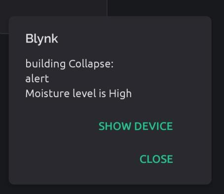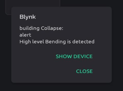 AnglepositionalchangesaredetectedusingMEMSsensors. The bridge pillar's tilt angle is continuously monitored by theMEMSsensorprogram.Theapplicationsoundsanalert whenever the tilt angle rises above a set threshold, suggesting possible movement or deformation of the structure. Users of the smartphone application receive an alert informing them of the tilt abnormality that has been discovered.Userscanthentakepromptactiontoguarantee the safety and stability of the bridge structure, such as carrying out further inspections or putting stabilization measures in place. The system improves overall bridge safetybypreventinganyaccidentsorstructuralcollapsesby real-timemonitoringandalerting.