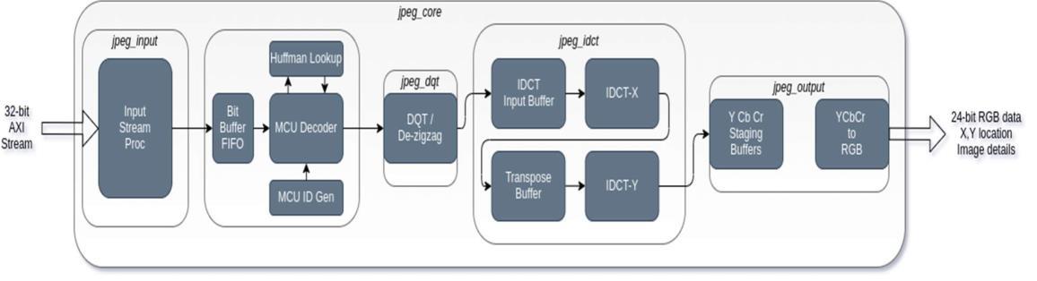 We observed there is a need of processing unit where it can process the compressed image efficiently with improved performance,clarityoftheimageandoccupieslessstorageFig-2showstheproposedblockdiagramforJPEGDecoder