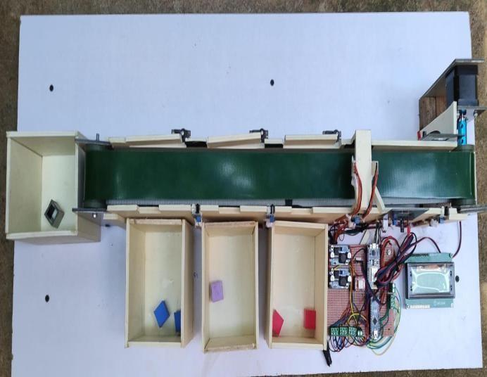 Prior to commencing the project, a brief examination was conducted on existing systems in this field. The work of prominent researchers was thoroughly reviewed, with key insights documented in the literature review. For instance, onestudyexploredautomatedobjectsortingusingArduino nano, proposing various sorting mechanisms. The system comprises a conveyor belt transporting objects such as bottles or boxes past sensors, with sorting logic determined by NODEMCU. Color sensors, an inductive sensor, and a load cell detect object colors. Based on color detection, the system activates a DC motor with a circular container divided into compartments, sorting objects accordingly. Another system employs Arduino to code color recognition, segregating desired objects into bins using servo motors. This proposed high-speed color sorting machine utilizes robust mechanical structure, advanced sensing technology, sophisticated image processing algorithms, and user-friendly interface components to accurately sort objects based on color properties.