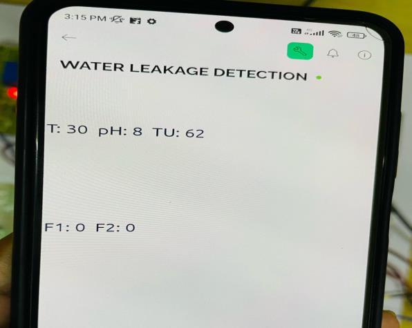 signals that are shown in real time on the Arduino IDE monitor. The Wifi module, which transmits the data to a mobile application called blynk app that displays the leakagemetricsandreal-timevariationsinwaterquality.