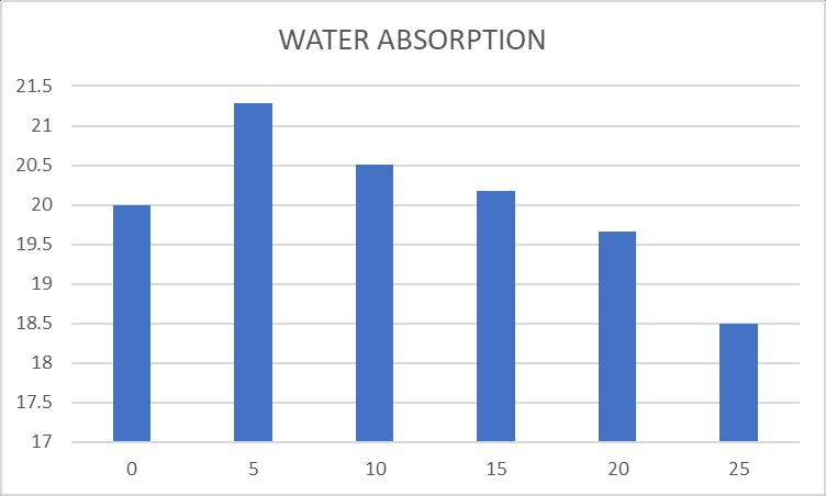 Theabovegraphshowsthatwaterabsorptionishighfor sundriedbrickthanovendriedbrick.Incaseofovendried brickwaterabsorptionishighat5%and25%.