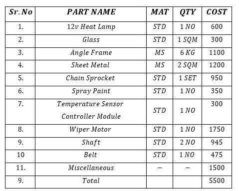 Key Words: Solar Seed Dryer, Heat Lamp, Temperature module,ConveyorMechanism.