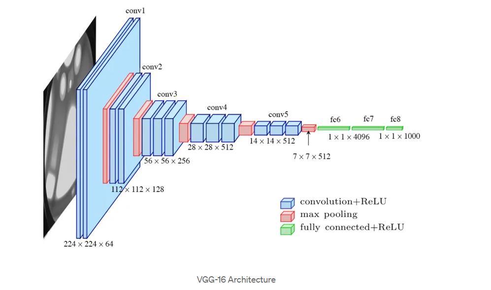 Visual Geometry Group or VGG16 for short is a powerful convolutional neural network (CNN) architecture. CNNs are a type of deep learning model that excels at image recognition. VGG16 has 16 convolutional layers that can automatically learn features from images. Imagine it as a highly sophisticated pattern recognizer. In the context of glaucoma detection, VGG16 can identify subtle variations in the optic nerve, blood vessels, and retinal tissue within fundus images. While VGG16 comes pre-trained on a vast image dataset, it needs further training to specialize in glaucoma detection. This process, called fine-tuning, involves using a dataset of fundus images labelled as healthy or glaucoma-affected. By analysing these labelled images, VGG16 refines the final layers of its network. These final layers learn to differentiate between healthy and diseased retinas based on the features extracted by theearlierconvolutionallayers.