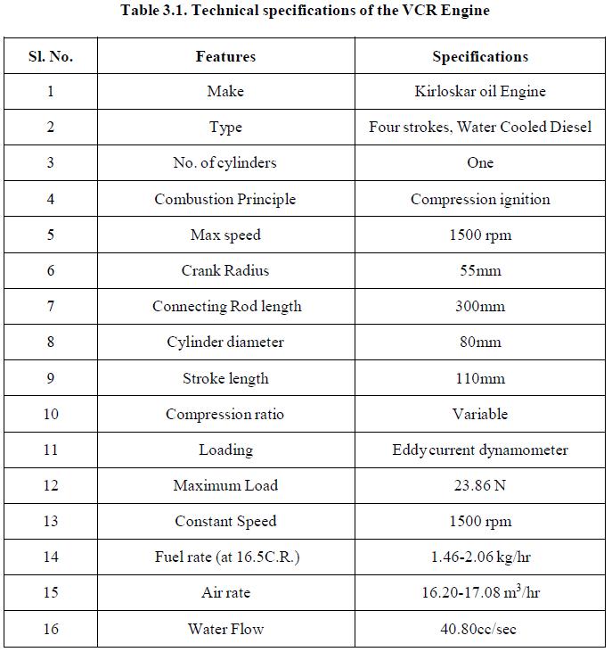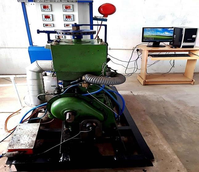 Experimental tests were conducted on a Variable Compression Ratio (VCR) diesel engine at Engines Laboratory in the Department of Mechanical Engineering, Anil Neerukonda Institute of Technology and Science (ANITS)Autonomous,VisakhapatnamIndia.