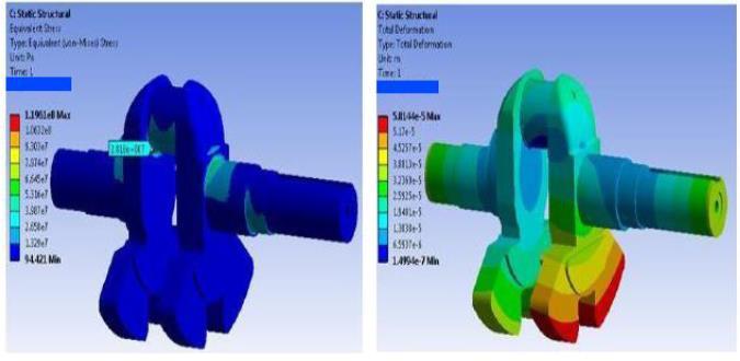 Figure 4.3 (a)and(b)EquivalentStressandTotal Deformationonthecrankshaft