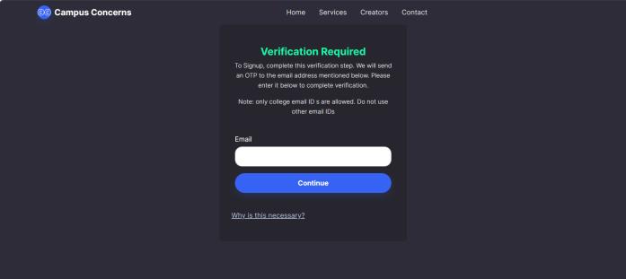 Forsigningup,emailverificationisrequired(Onlycollege idcanbeused).