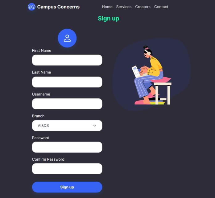 “Campus Concerns” is a website portal for grievances. Software tools like VS Code, Xampp and any compatible webbrowser.