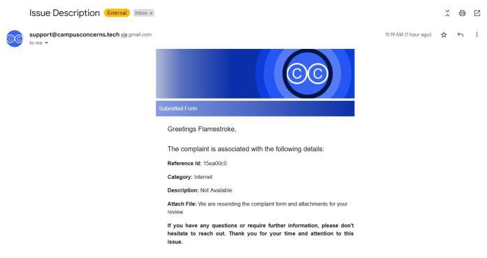 A copy of the studentslodgedconcern will be senttothe studentsmail.